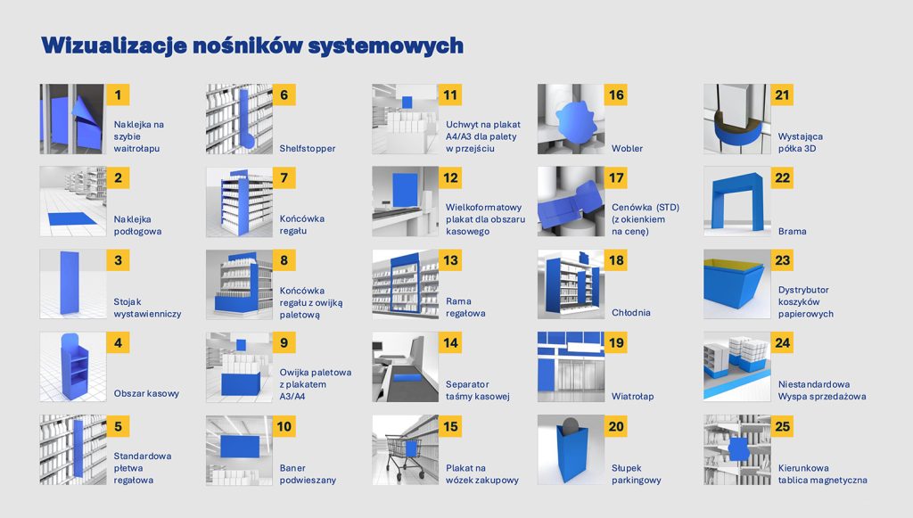 Reklama POS obejmuje wszelkie materiały i nośniki promocyjne umieszczone w obrębie sklepu, których celem jest: